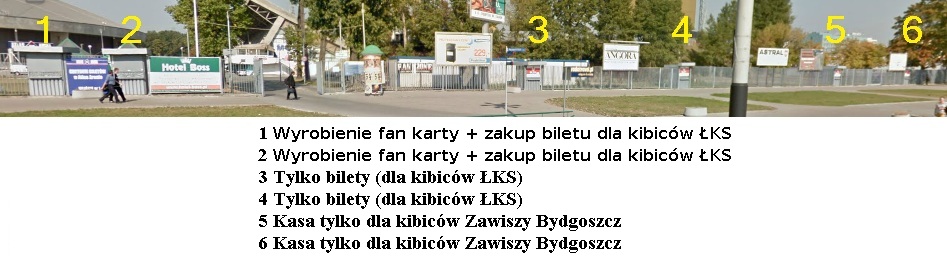 W dniu meczu kasy biletowe otwarte zostaną o godzinie 12. Prosimy o zapoznanie się z poniższą grafiką, która objaśnia co w której kasie można kupić i uniknąć niepotrzebnego stania w kolejkach i przechodzenia z kasy do kasy. Dwa punkty przeznaczone będą tylko i wyłącznie dla kibiców Zawiszy Bydgoszcz (kasy najbliżej dworca Kaliskiego) – uprzejmie prosimy o korzystanie tylko z nich. W przypadku kiedy ustawicie się do kas dla ełkaesiaków będziecie musieli płacić za wyrobienie fankarty, w punktach dla nas będą bezpłatne !!!