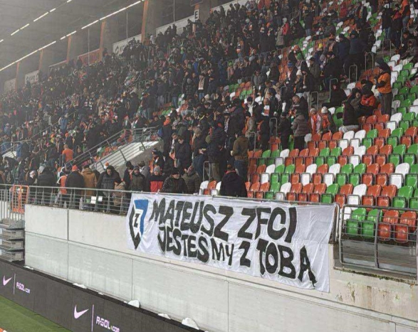 Dziś w Lubinie podczas meczu Zagłębia z Jagiellonią Białystok na płocie zawisł transparent dla Naszego Brata z Trybun Matiego „Mateusz ZFCI JESTEŚMY Z TOBĄ”. Szacunek Bracia za wsparcie do zobaczenia na kibicowskim szlaku ![]()