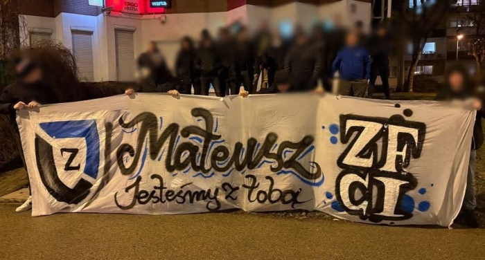 ŁKS Karolew z poZdrowieniami i transparentem powrotu Zdrowia dla Naszego kolegi z Trybun ZFCI "Mateusz Jesteśmy Z Tobą".